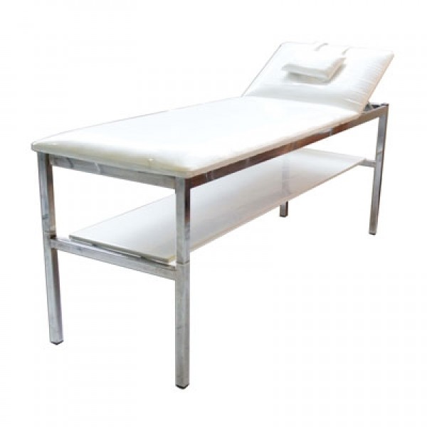 Camilla, con patas cromadas, cubierta acolchonada en vinil.